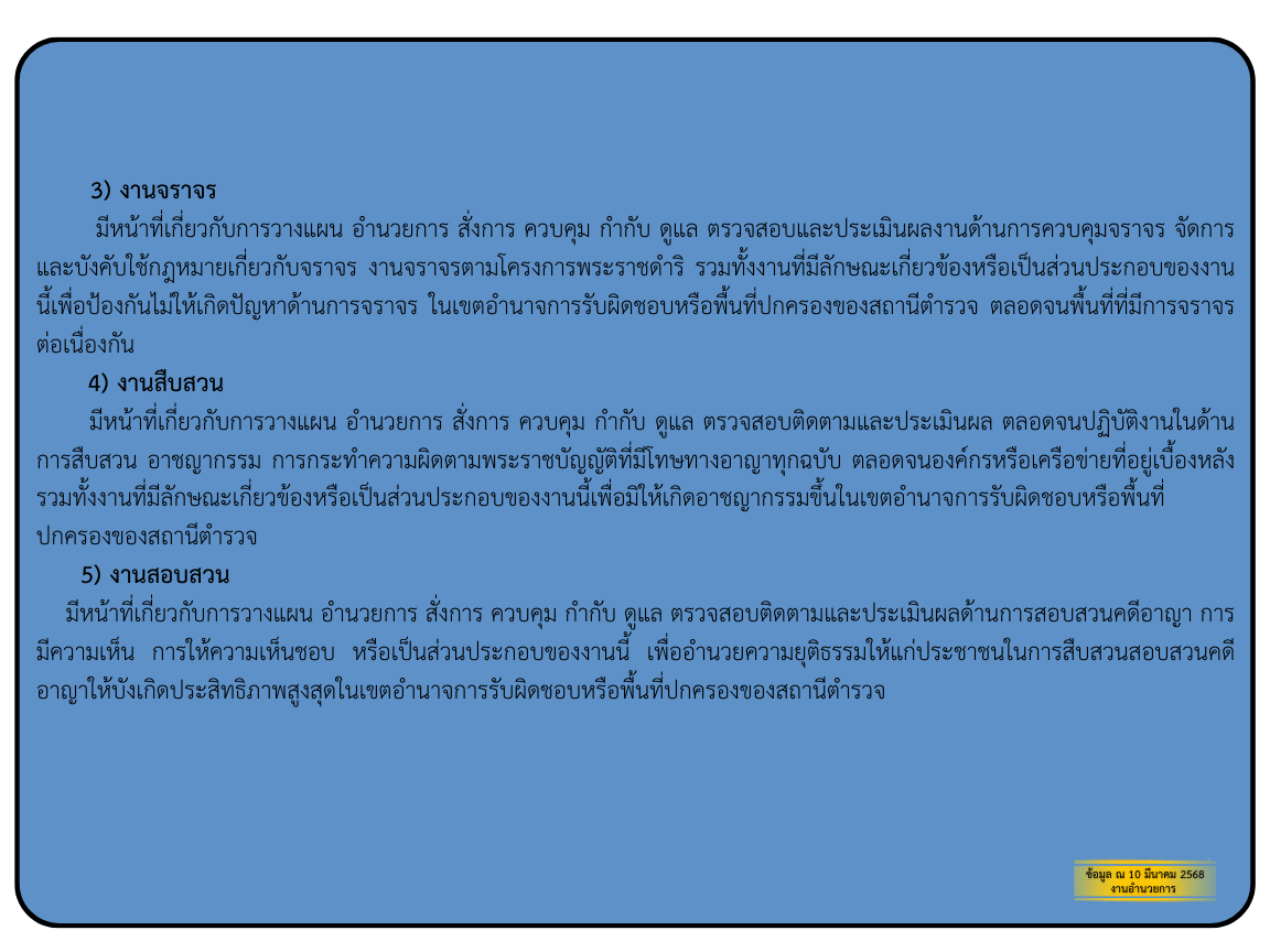 คำสั่ง ตร. ที่ 537/2555 เรื่อง การกำหนดอำนาจหน้าที่ของตำแหน่งในสถานีตำรวจ