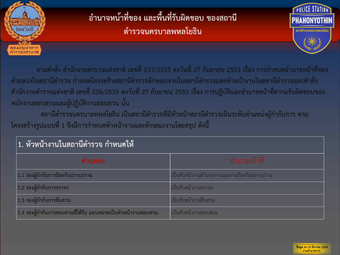 คำสั่ง สน.พหลโยธิน ที่ 66/2568 เรื่อง การมอบหมายหน้าที่ให้ปฏิบัติราชการภายใน สน.พหลโยธิน